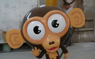 頭戴皇冠的玻璃鋼卡通猴子雕塑